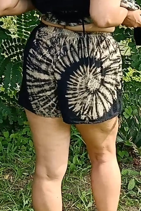 Not stretchy, 100% cellulose (plant-based) rayon fabric with elastic waist and cinch sides.