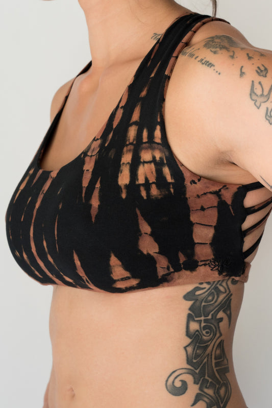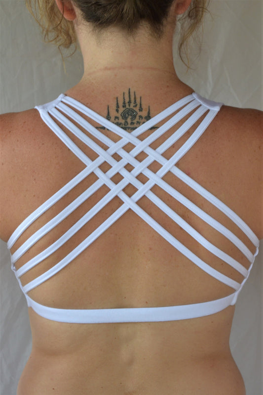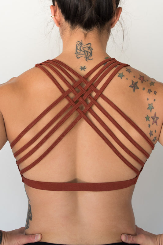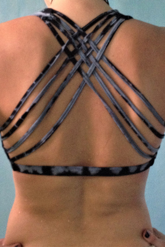 Our classic design with criss cross back straps, perfect for yoga and the gym. Created with yogis in mind, this style will keep the girls place even during down dog and inversions! Fits A-D cups beautifully.