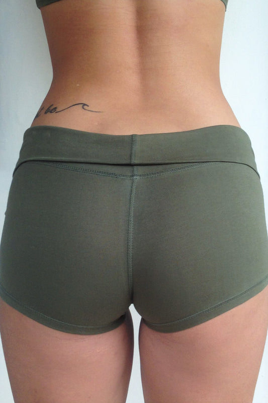 Our stretchy Yoga Shorts all have an adjustable fold over waist for a custom fit, wear higher waisted or lower on the hips, curve hugging customized fit your body.