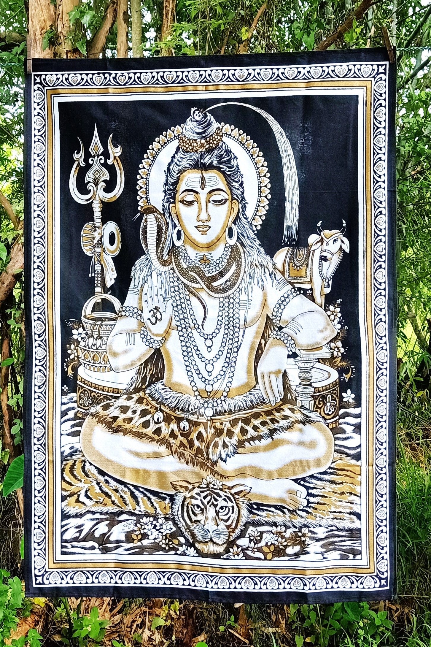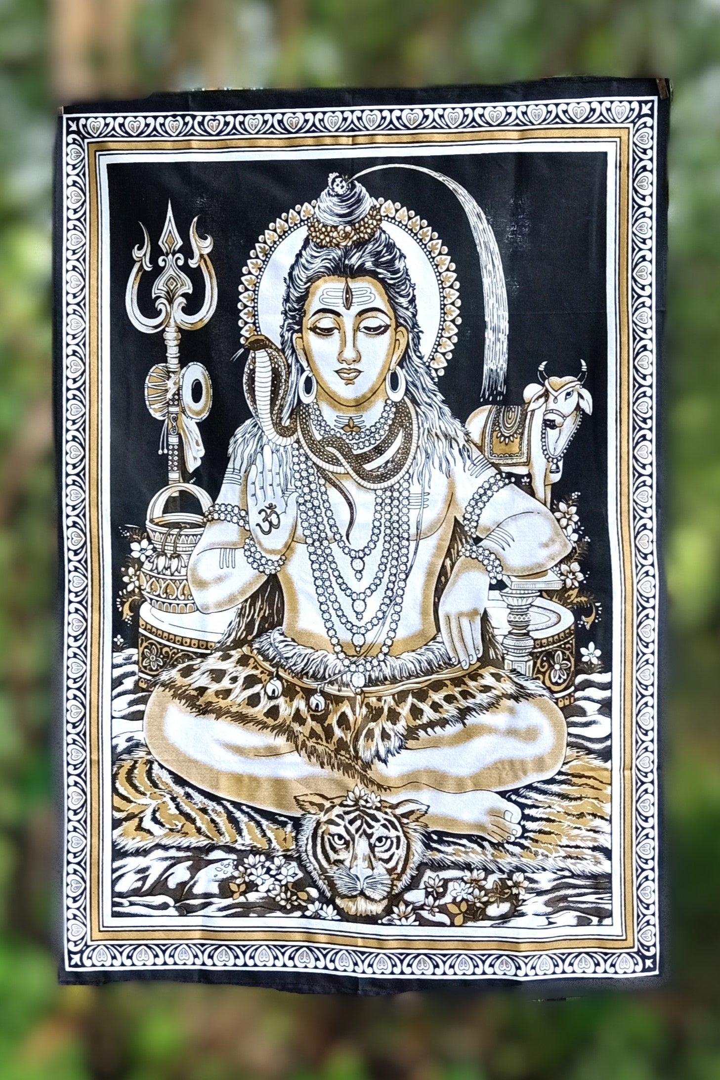 Gorgeous spiritual wall art tapestry available in Shiva, Ganesh or Buddha. 100% cotton with black and hand block printed gold details. Perfect for yoga studios, dorm rooms and meditation spaces.