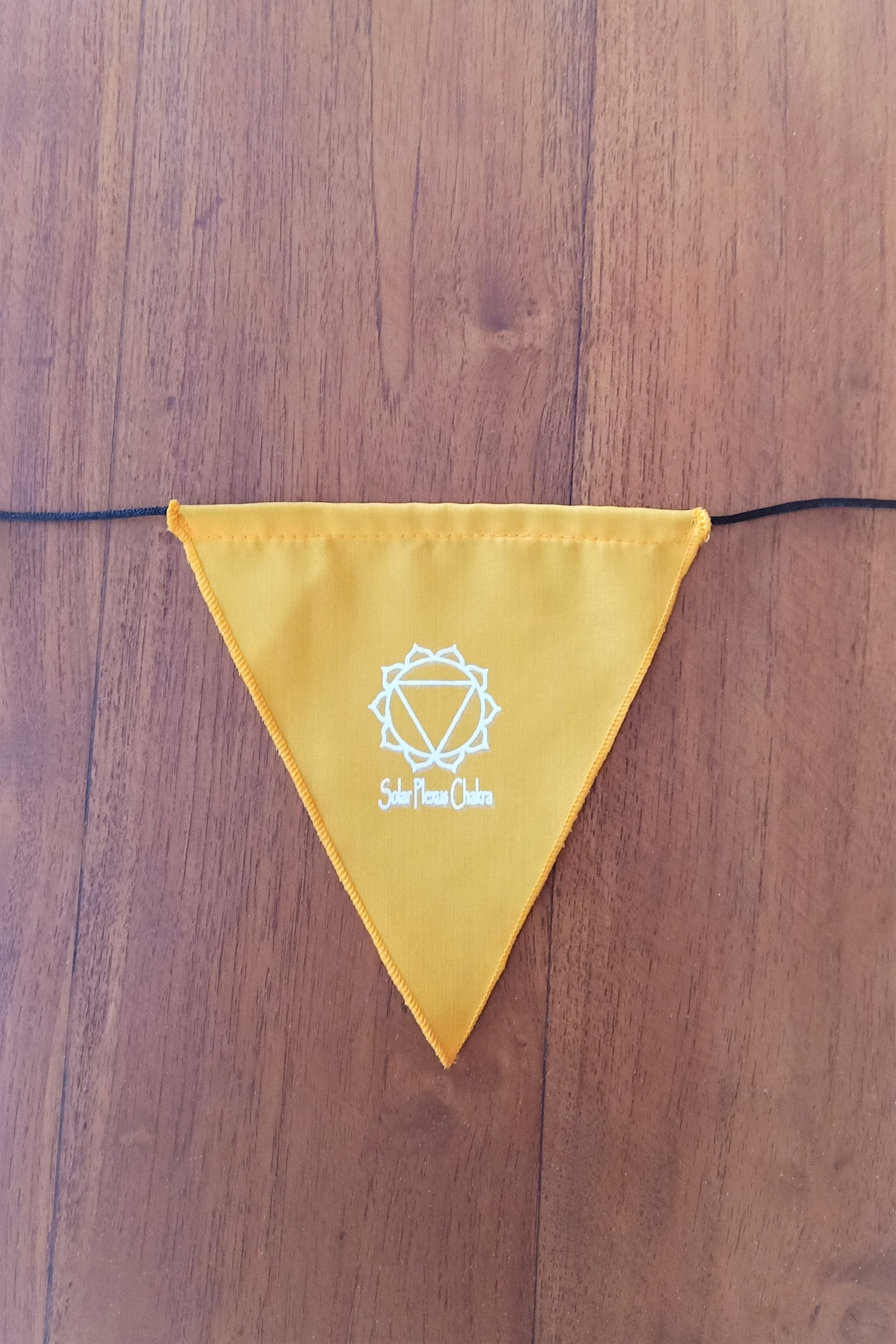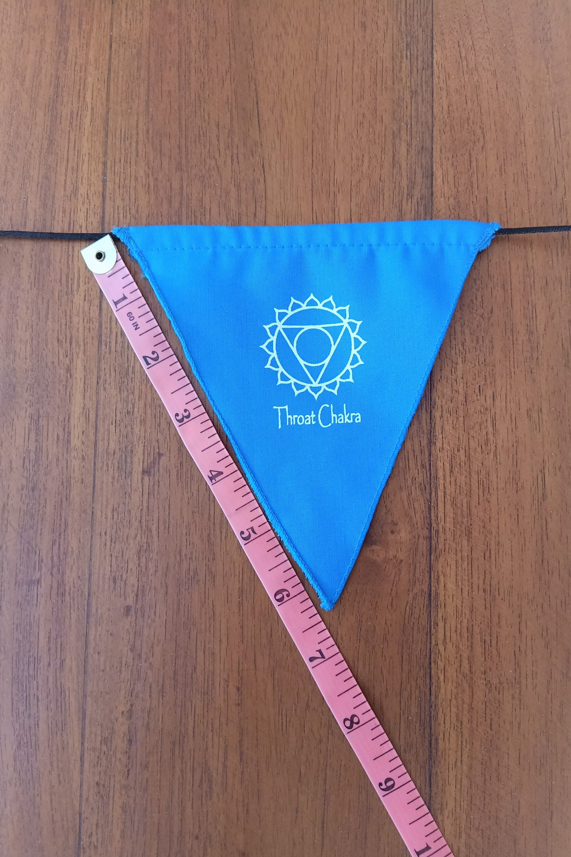 Each set has the 7 Chakras each on their own triangle shaped flag, represented in their rainbow of colors. The string of flags is approx. 50.5" from first flag to the last. Each flag is approx. 6.5" tall and 5.5" wide. Comes ready to hang with approximately an extra foot of string on each side. Perfect for yoga studios, meditation spaces, festival camping decorations, garden areas and anywhere that could use come color and personality.